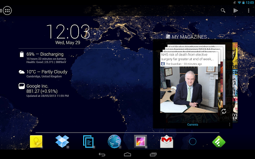 - 'Shutters', a unique feature that unlocks the power and potential of Android widgets. Swipe an app icon, and that app's widget is automatically created (note: Shutters require Android 4.1 Jelly Bean).