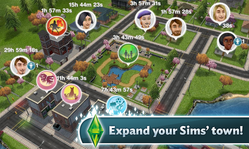 Will your Sims be friends – or enemies? Form relationships with a slap, a high-five, or some Woohoo! Make your town bustle with pet stores, car dealerships, and supermarkets. Expand your city as you get more Sims.